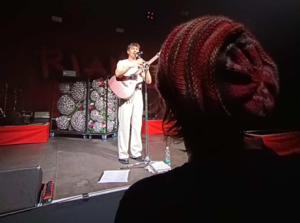 Die pulsierende Musik von Rian durchdrang die sehr volle Konzerthalle im Wizemann und versetzte die Fans in Aufregung. Zwischen Plastikbechern und Snack-Tüten spürte ich die Energie des Publikums, die wie ein elektrischer Strom floss. Ich stand mit meiner Begleitperson Elena in der ersten Reihe, ganz im Moment gefangen. Und während ich mich an der Sperre anlehnte, um mich vom langen Stehen auszuruhen, passierte es.
